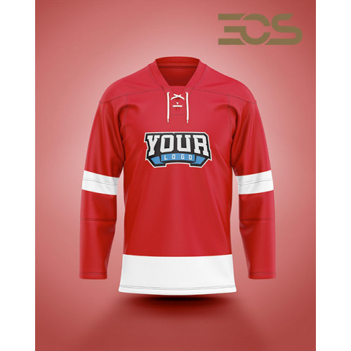 Design and customize your own hockey jersey in your team colors and with your own logos. Choose from 4 different collars. This Jersey is made in light and breathable 100% polyester with a tailored cut for better comfort and and with unlimited sublimated print in high quality and great detail.