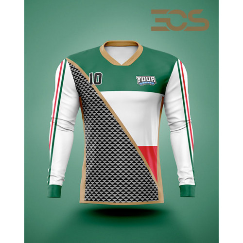Design and customize your own long sleeve soccer jersey in your team colors and with your own logos. Choose from 4 different collars. This Jersey is made in light and breathable 100% polyester, Antiseptic Interlock textile for better comfort and and with unlimited sublimated print in high quality and great detail. Side panels in mesh fabric for optimal airflow. Our most popular soccer jersey.
