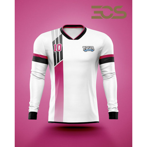Design and customize your own long sleeve soccer jersey in your team colors and with your own logos. Choose from 4 different collars. This Jersey is made in light and breathable 100% polyester, Antiseptic Interlock textile for better comfort and and with unlimited sublimated print in high quality and great detail. Side panels in mesh fabric for optimal airflow. Our most popular soccer jersey.