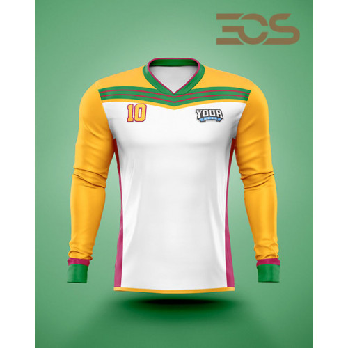 Design and customize your own long sleeve soccer jersey in your team colors and with your own logos. Choose from 4 different collars. This Jersey is made in light and breathable 100% polyester, Antiseptic Interlock textile for better comfort and and with unlimited sublimated print in high quality and great detail. Side panels in mesh fabric for optimal airflow. Our most popular soccer jersey.