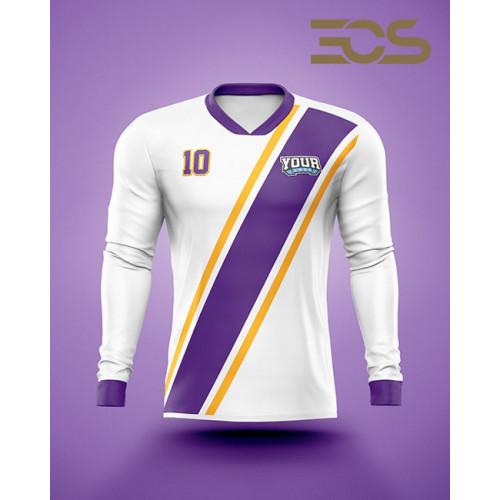 Design and customize your own long sleeve soccer jersey in your team colors and with your own logos. Choose from 4 different collars. This Jersey is made in light and breathable 100% polyester, Antiseptic Interlock textile for better comfort and and with unlimited sublimated print in high quality and great detail. Side panels in mesh fabric for optimal airflow. Our most popular soccer jersey.